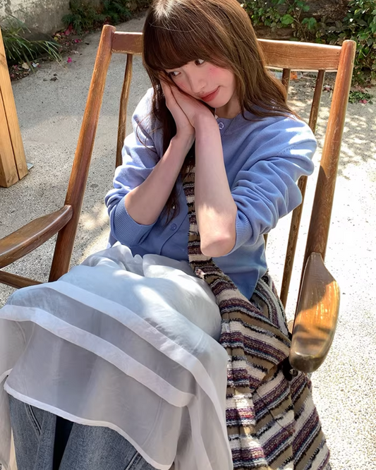 Pateern Color Button Knit LG0023