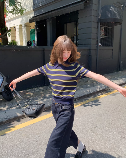 Horizontal stripes Navy Polo Shirt BU0180