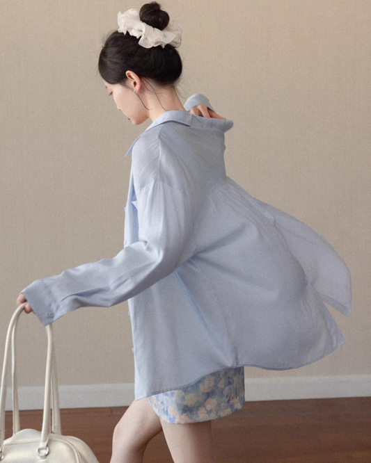 Skyblue Chest Ribbon Knit Shirt IS0008