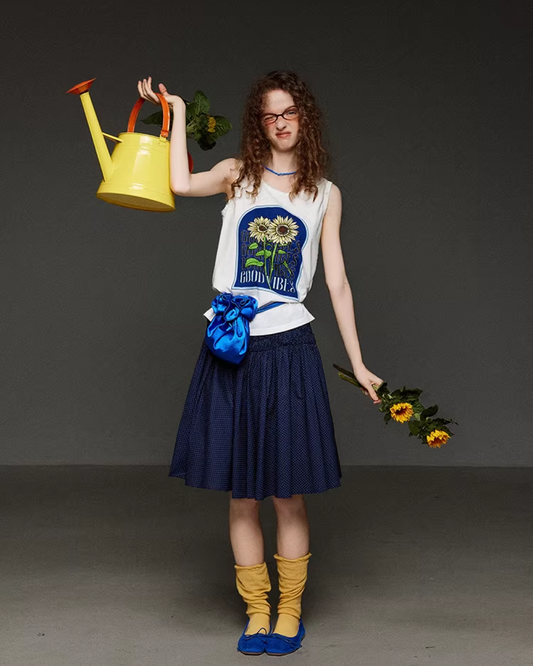 Yellow Bicolor Shirt Gray Long Skirt CA0012