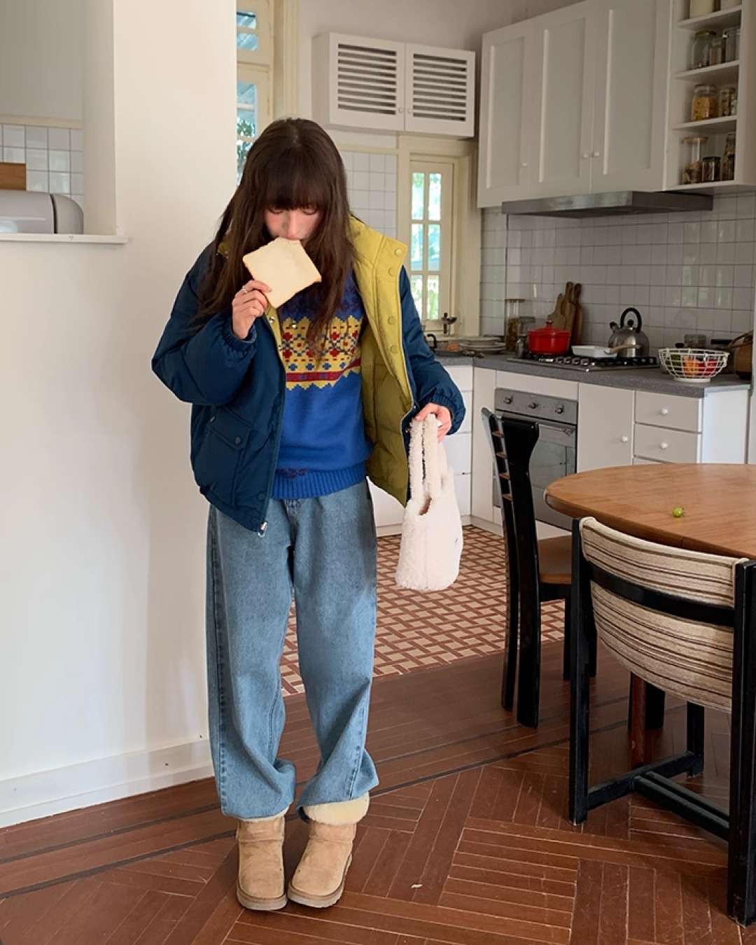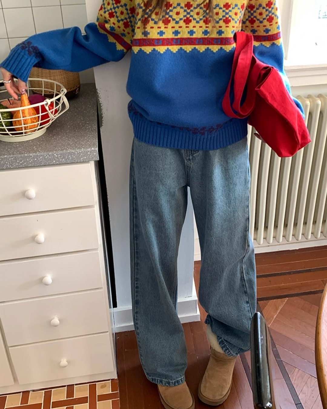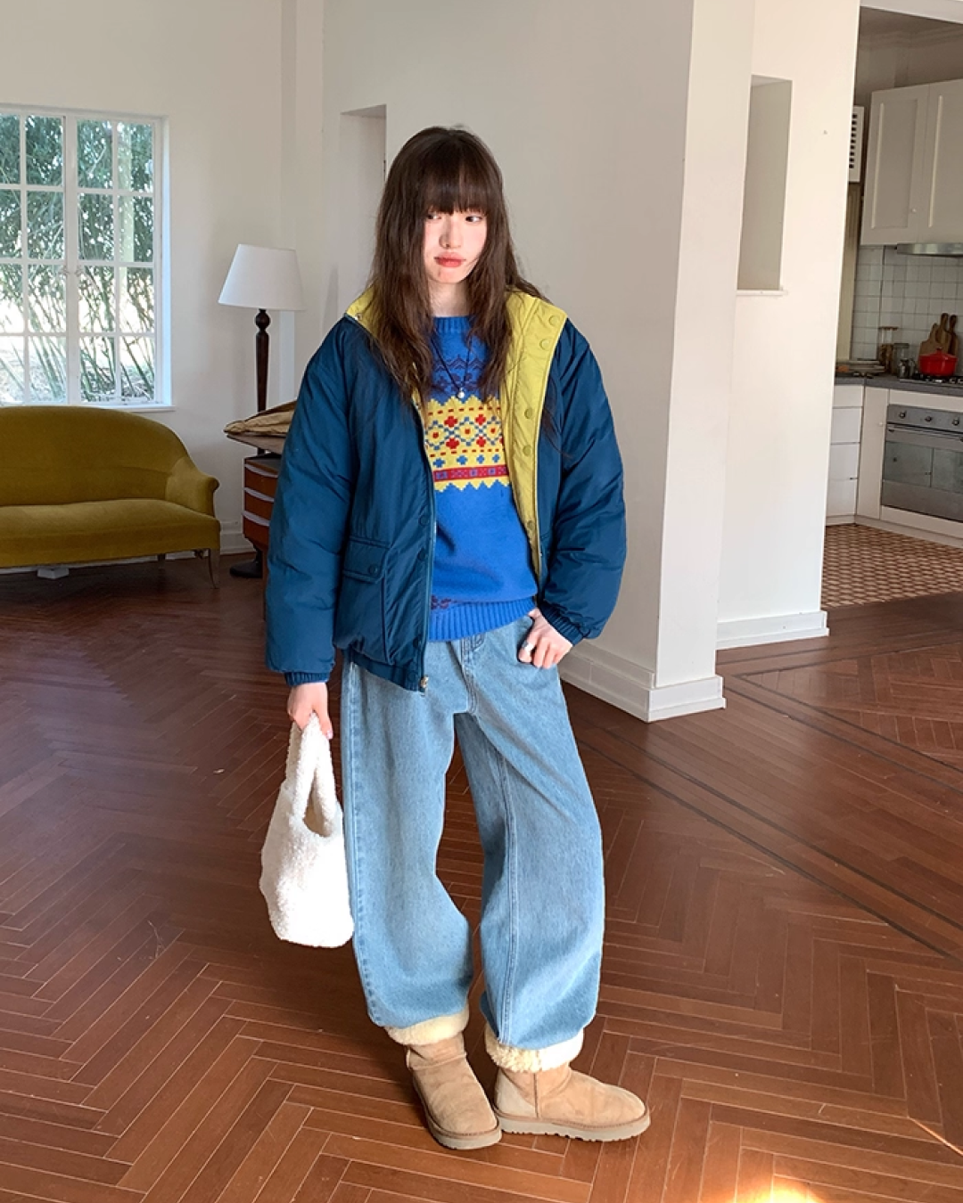 M 사이즈 총길이 : 63cm / 가슴둘레 : 112cm / 어깨 소매 길이 : 69cm