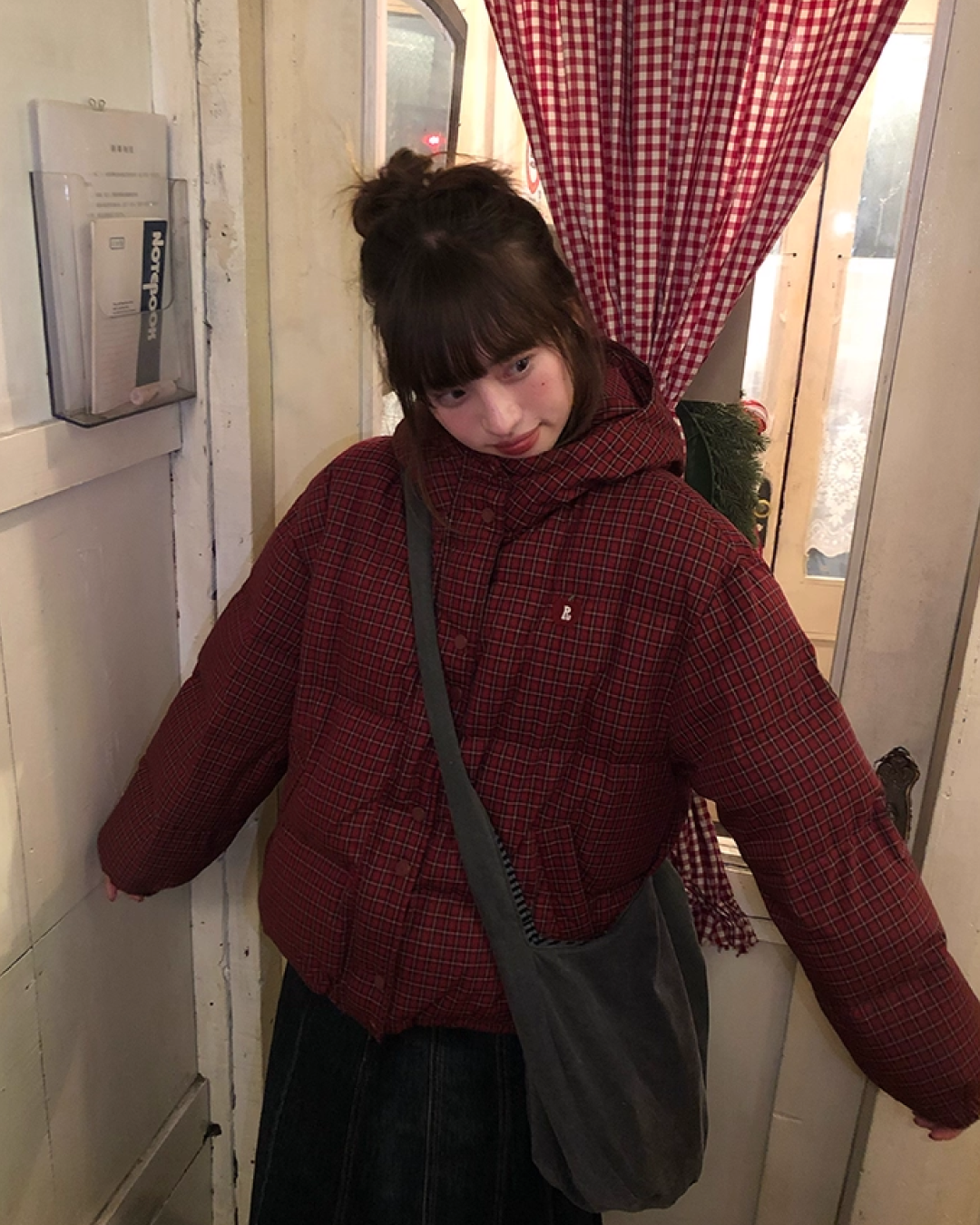 Red Check Pattern Down Jacket BU0099