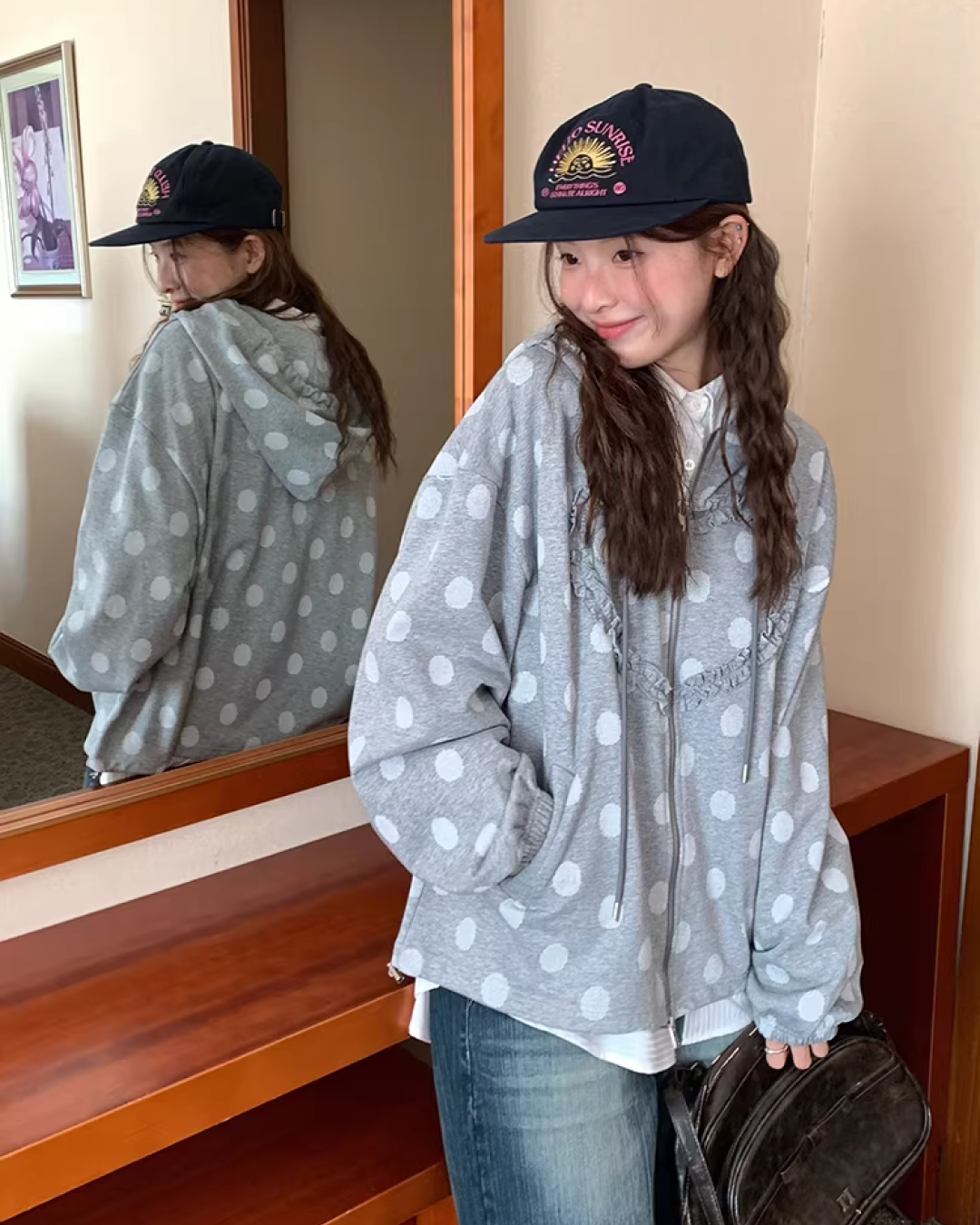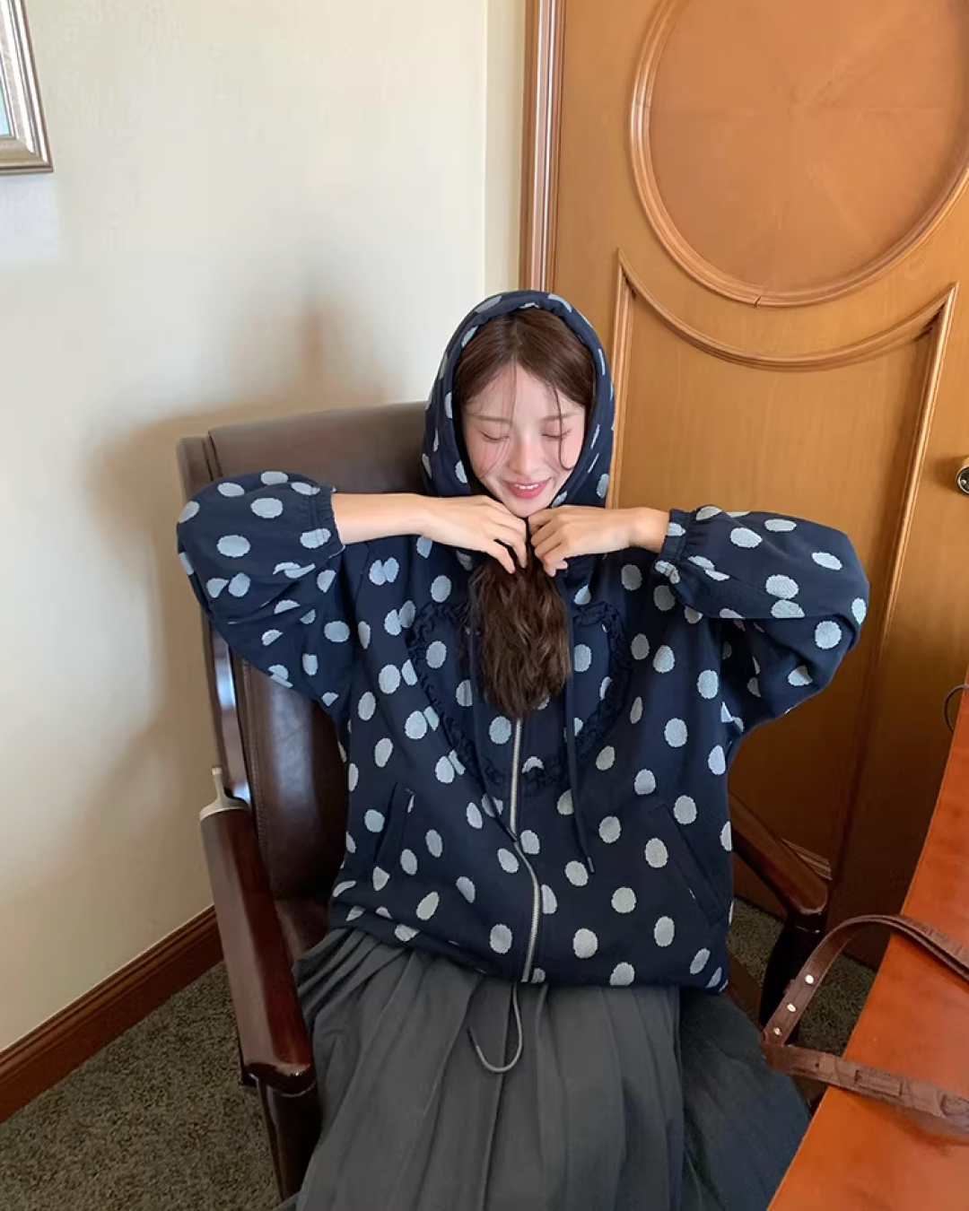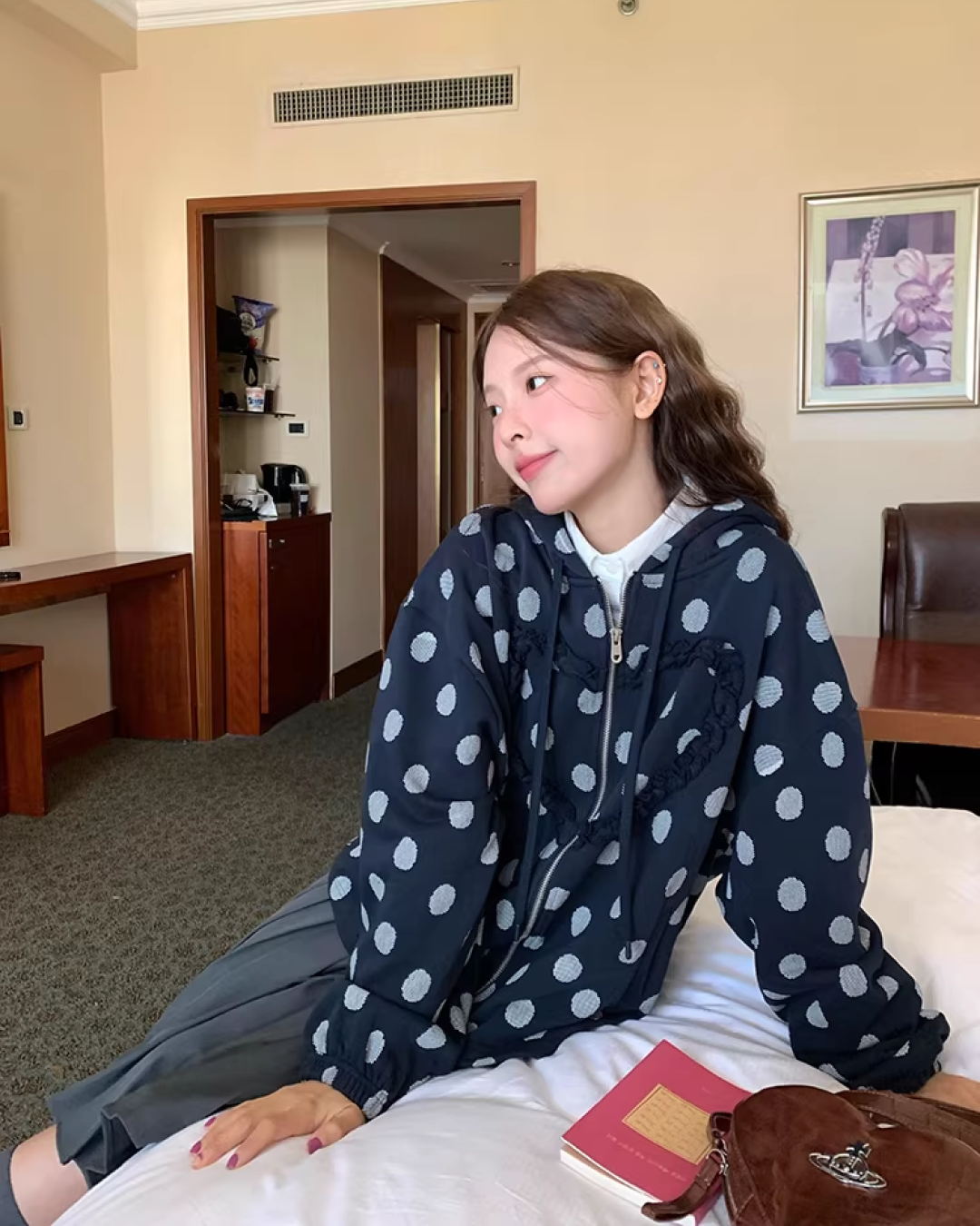 Heart Polka Dots Pattern Zip Hoodie WH0013