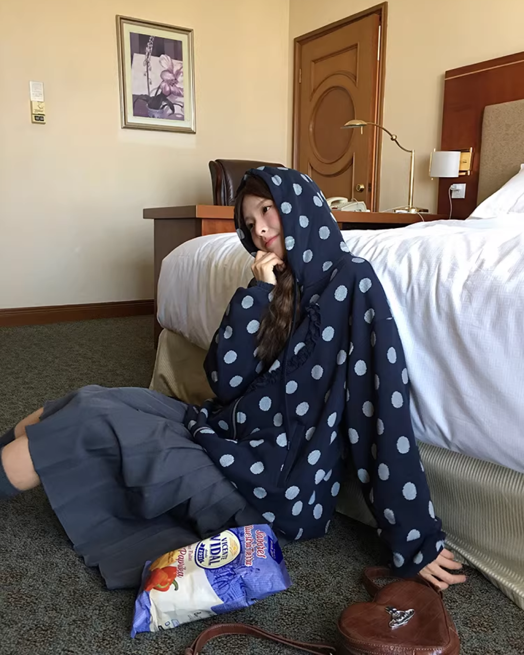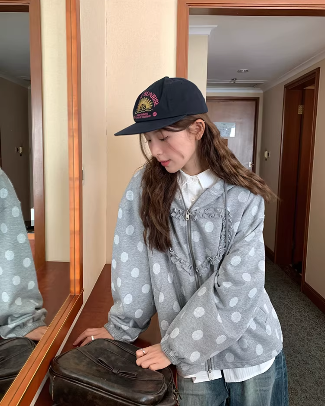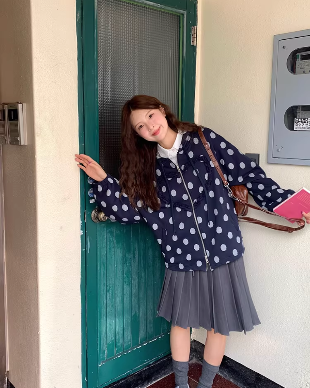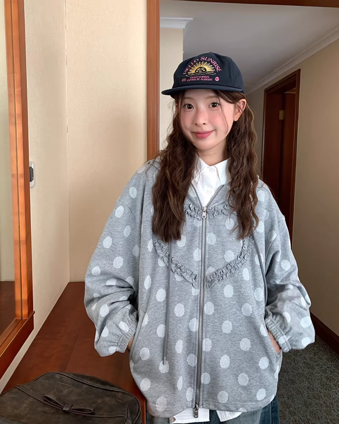 Heart Polka Dots Pattern Zip Hoodie WH0013