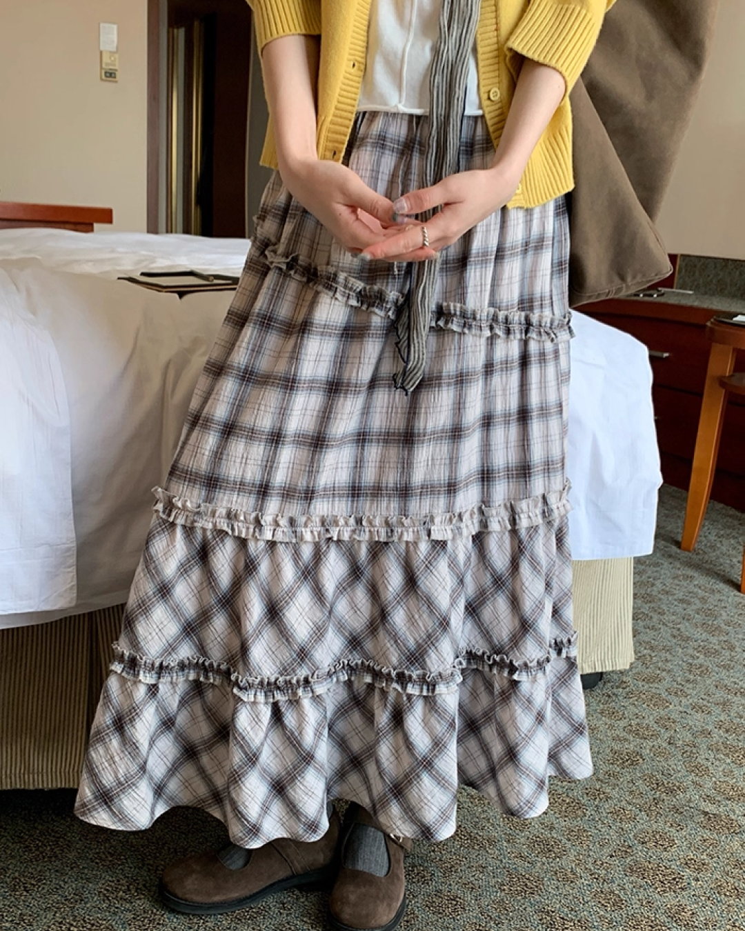 Lace Fabric Check Skirt B0011