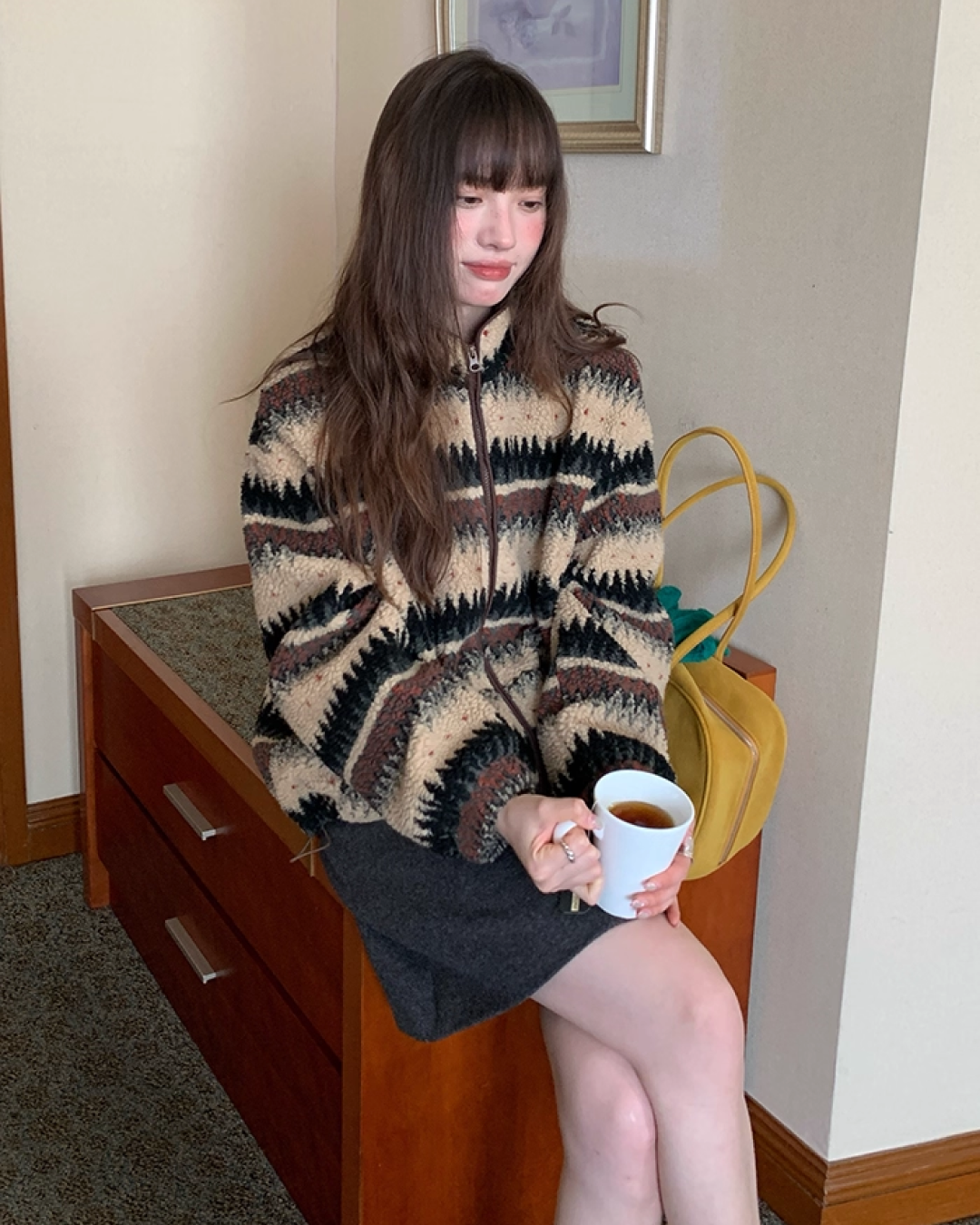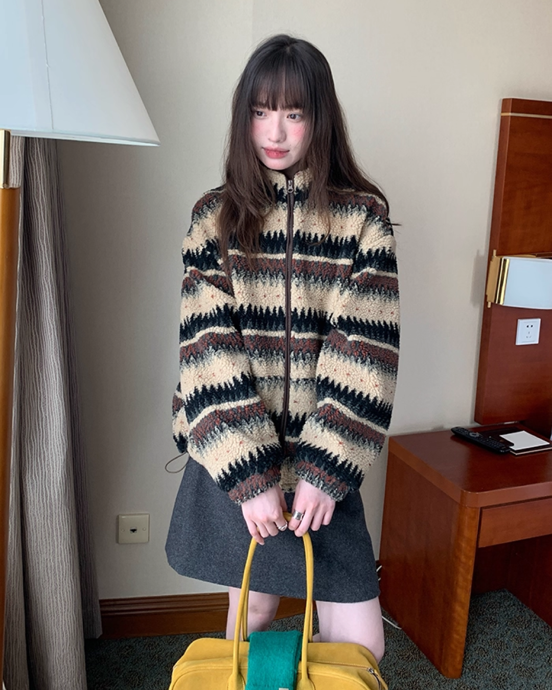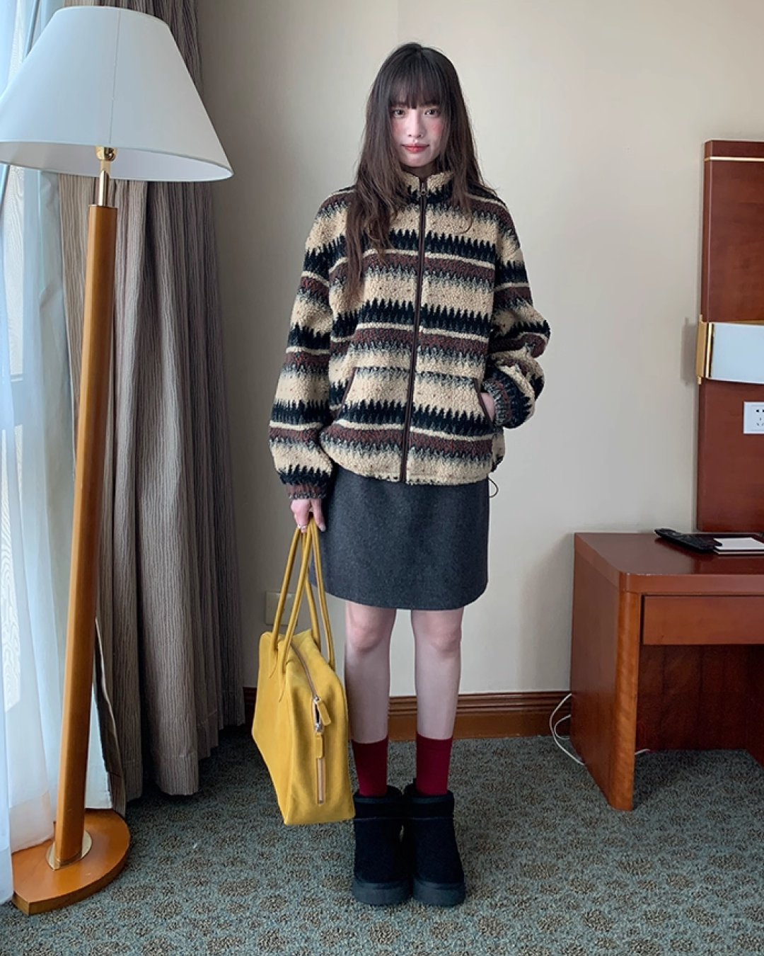 Pettern Zip Boa-fleece Outer BU0038