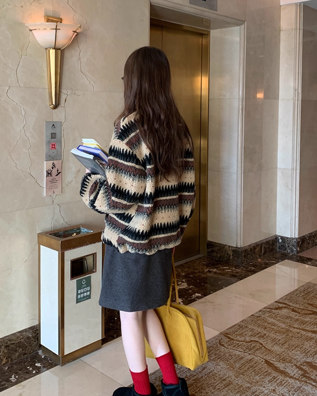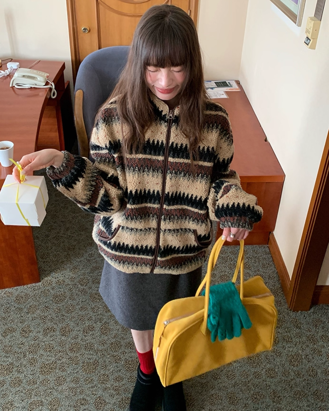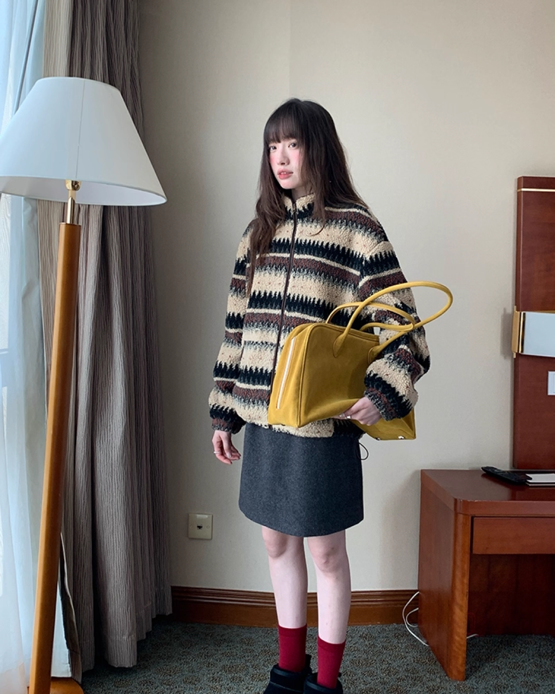 Pettern Zip Boa-fleece Outer BU0038