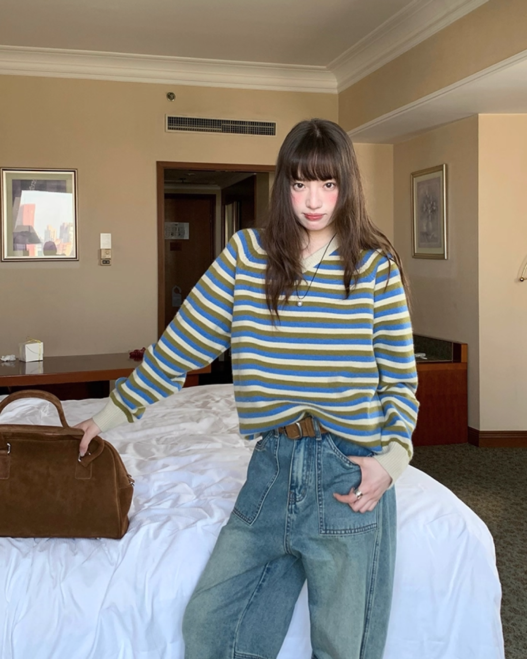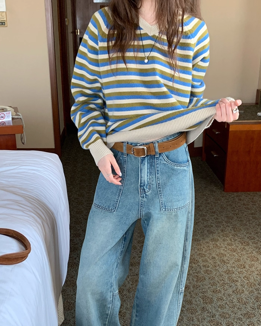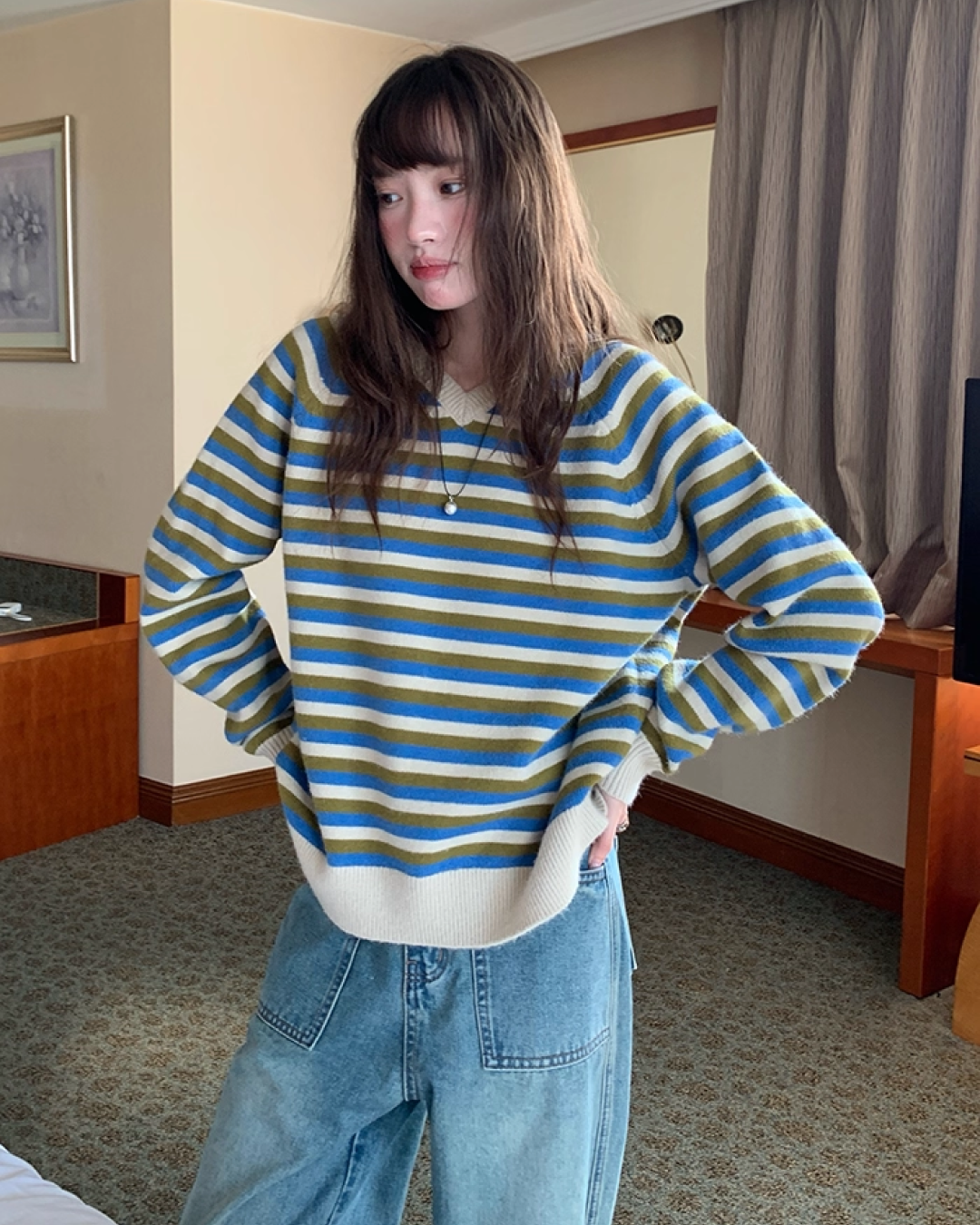 V-neck Border Knit BU0039