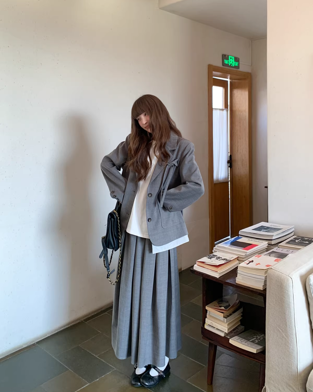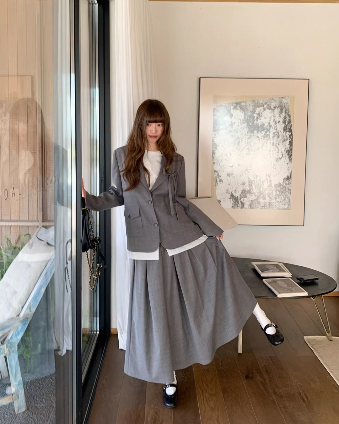 Lace Layerd Jacket & Pleated Long Skirt BU0168