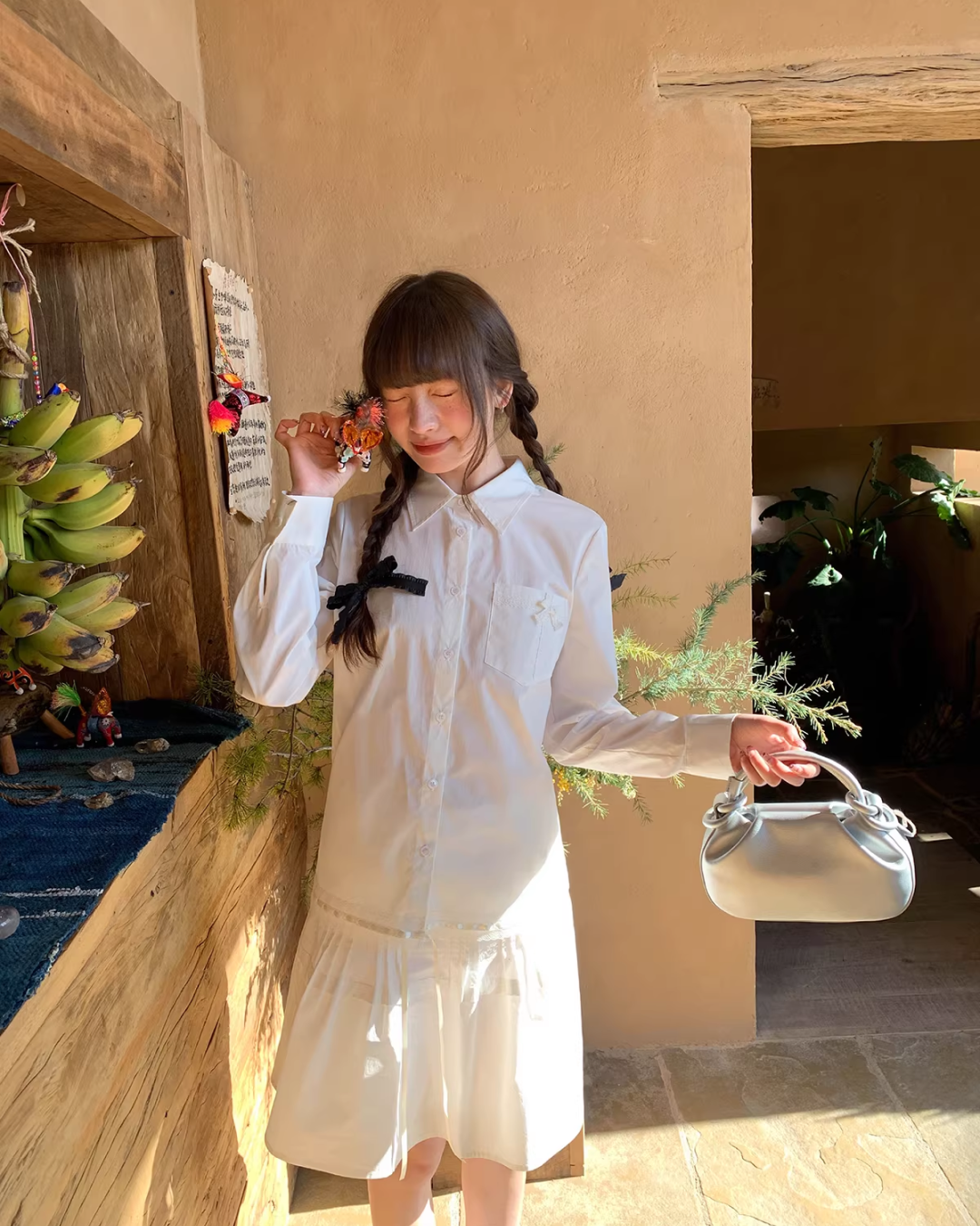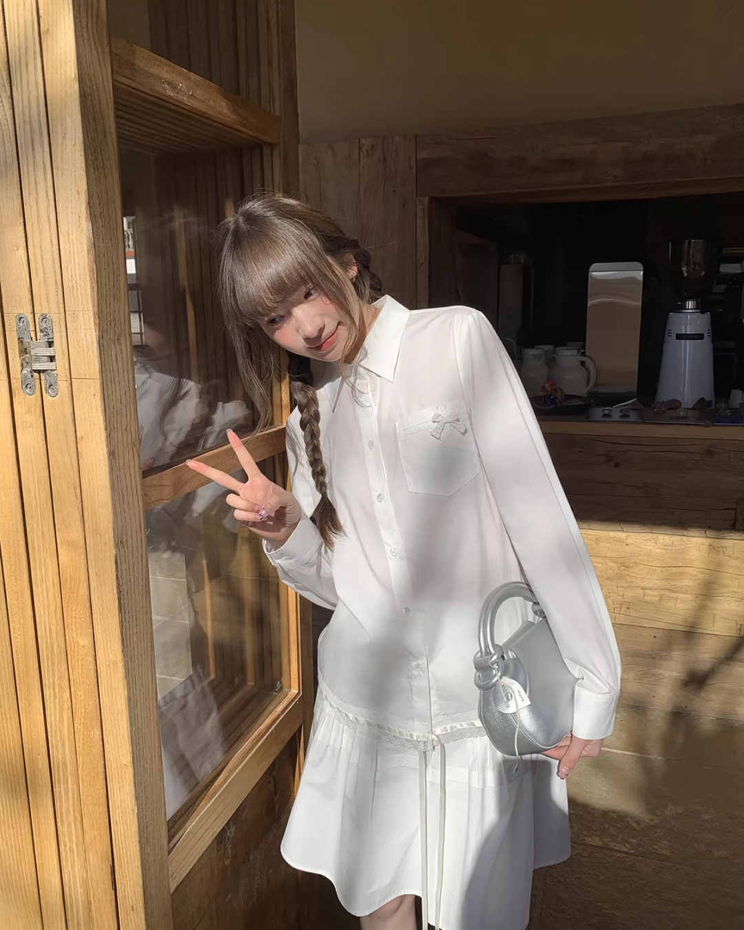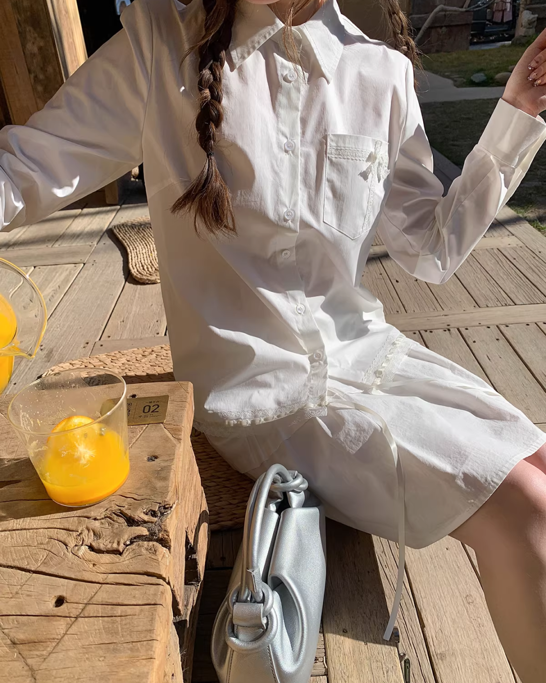 Chest Ribbon White Shirt BU0172