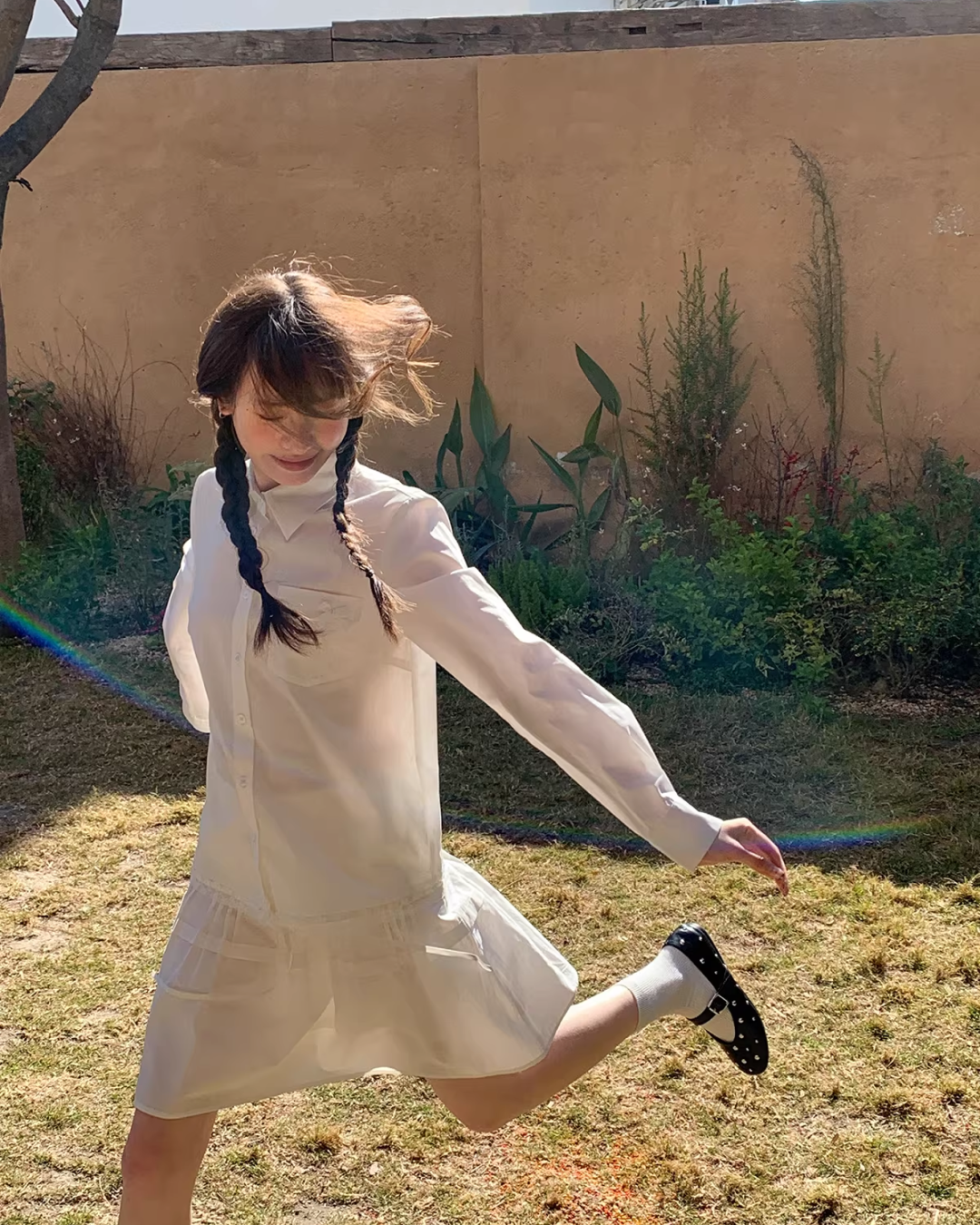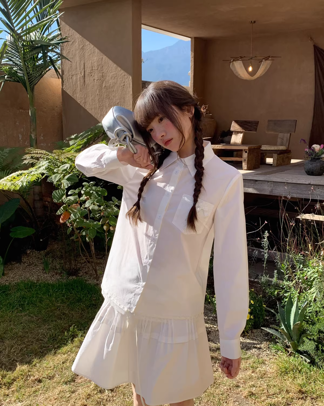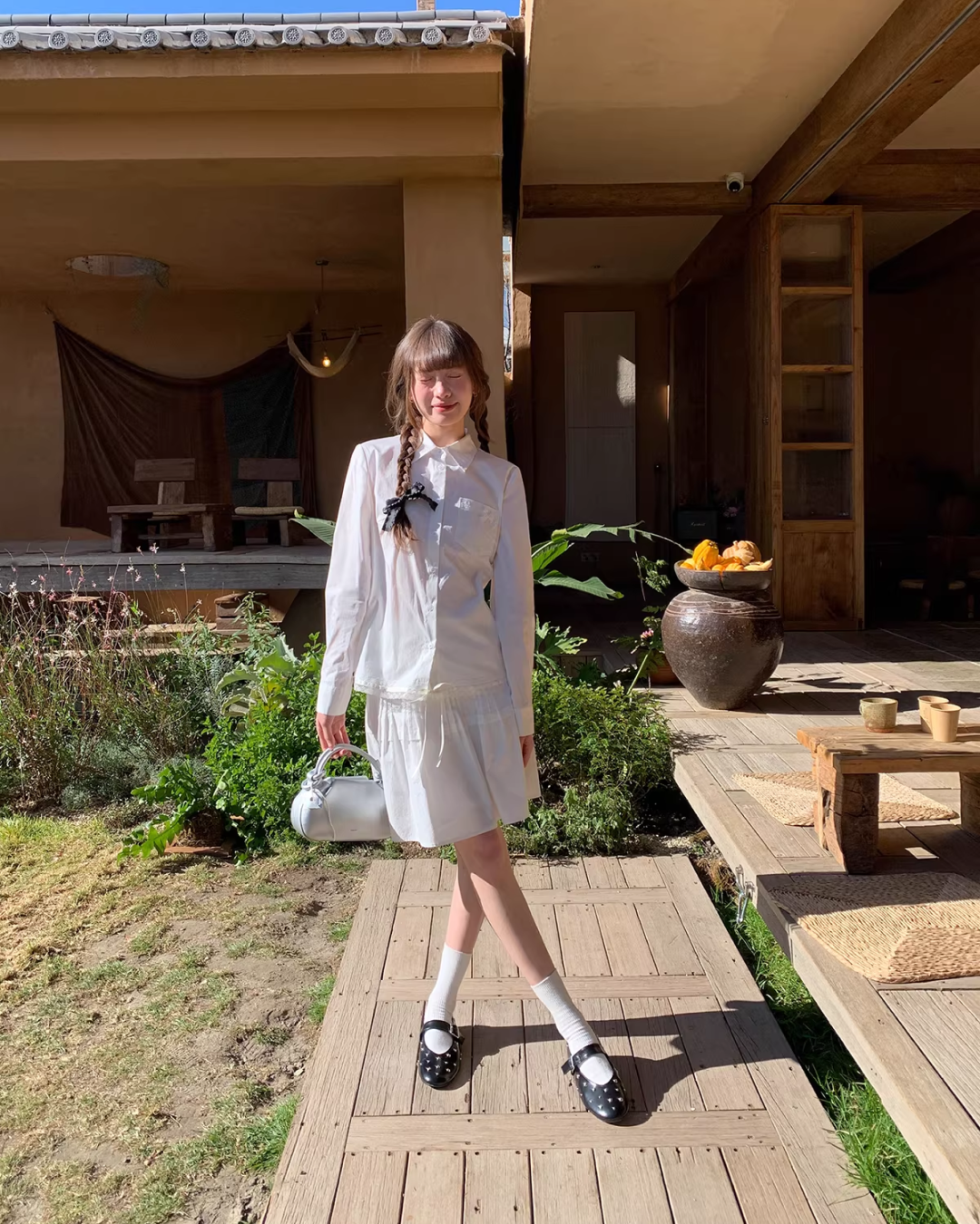 Chest Ribbon White Shirt BU0172