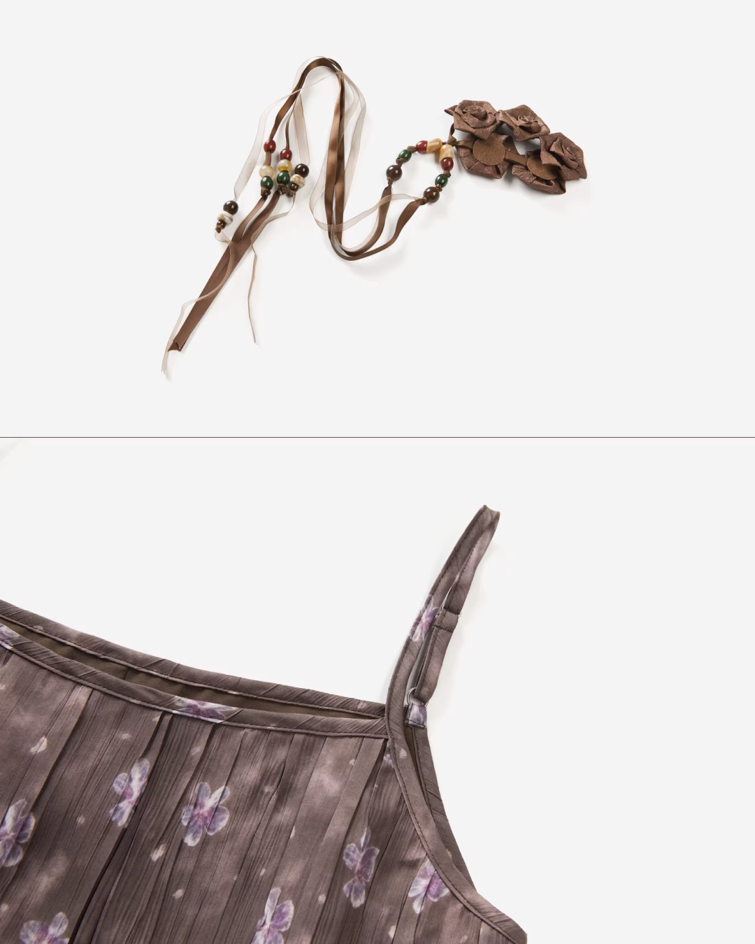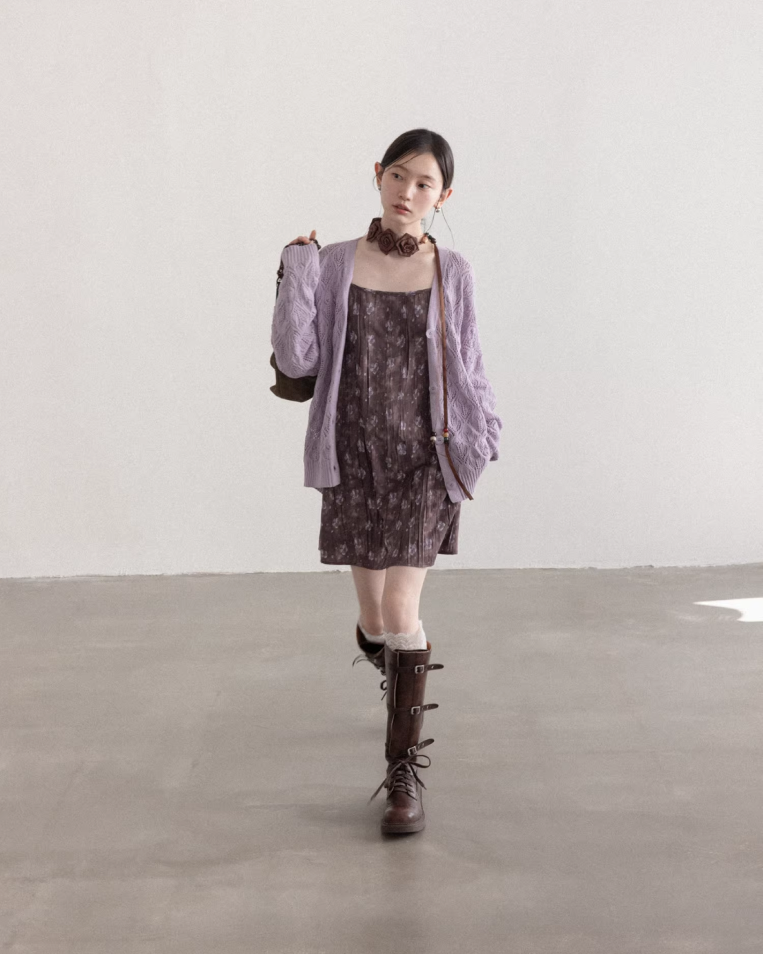 Purple Knit Cardigan & Flower Pattern Camisole Dress CA0016