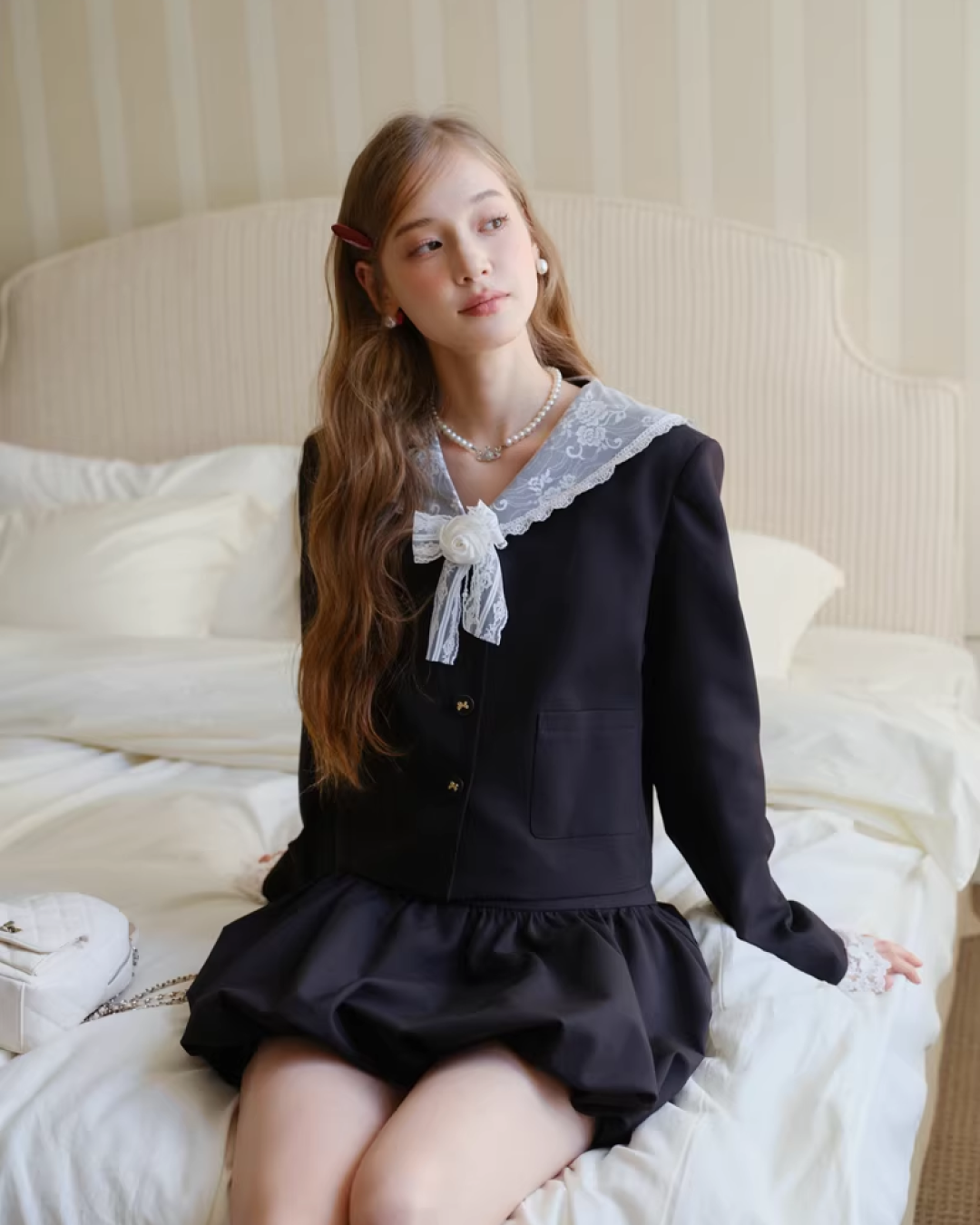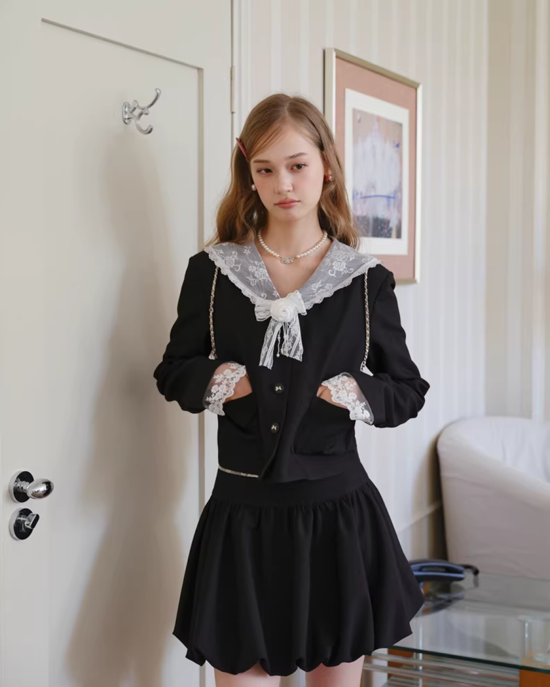 ・ほつれ・糸の始末・製造過程に生じた匂い・チャコペンの跡・シワなどがみられる場合があります。