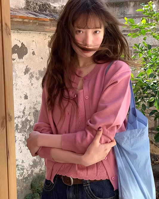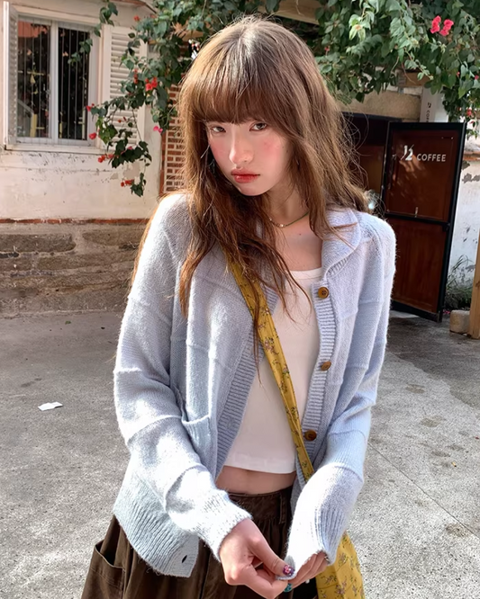 Pateern Color Button Knit LG0023