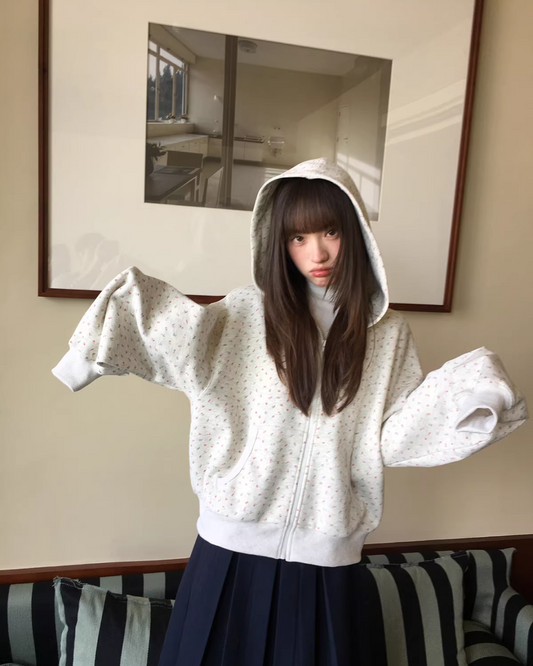Flower Printed Zip Hoodie BU0177