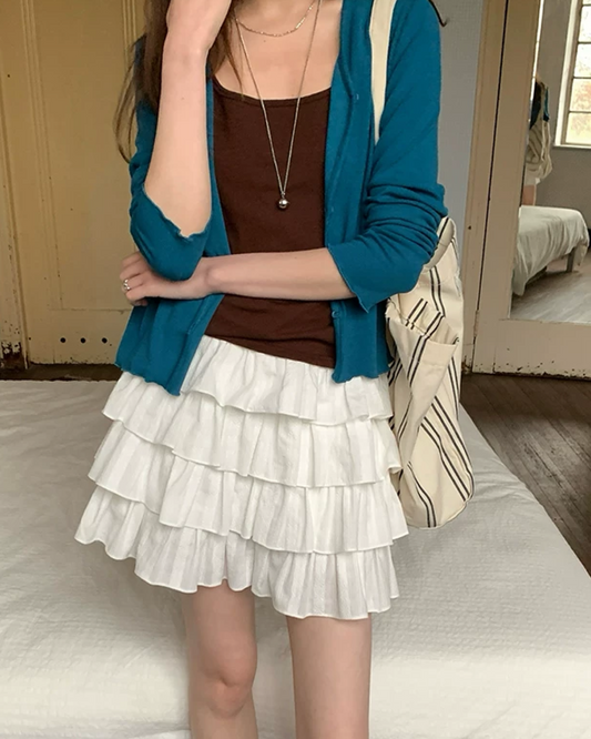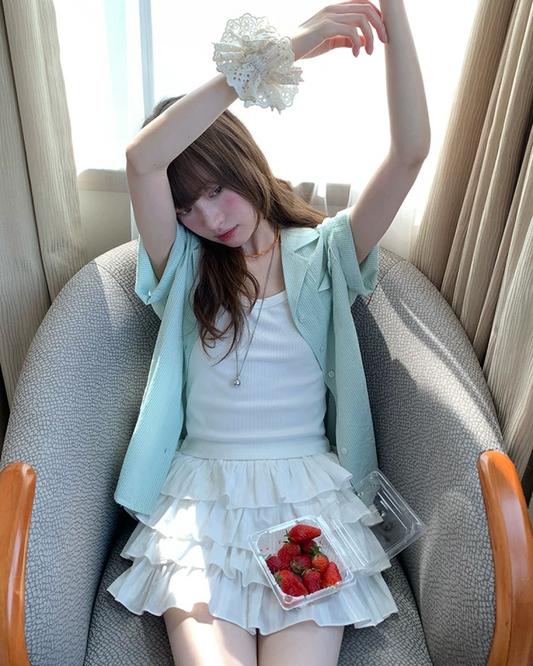 Stripe Ribbon Zip Jacket & Frill Short Skirt CA0014