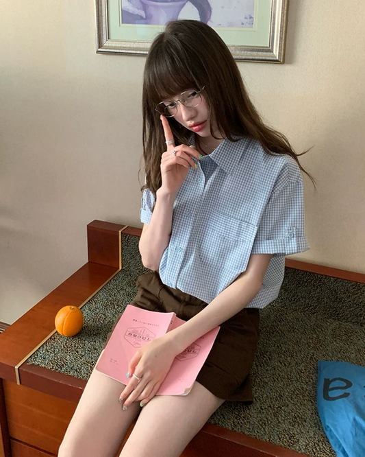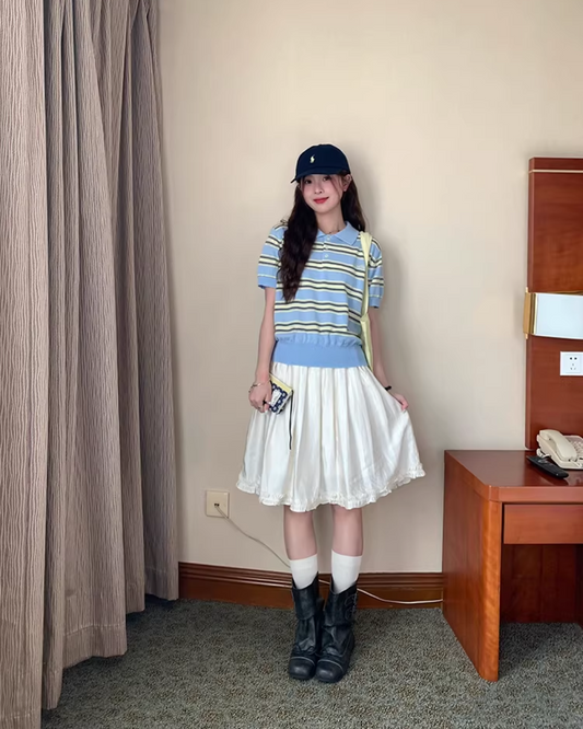 Skyblue Chest Ribbon Knit Shirt IS0008