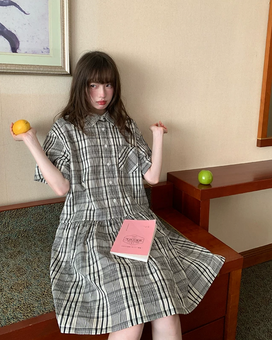 Pink Cable Knit Cardigan & Bias Check Skirt CA0028