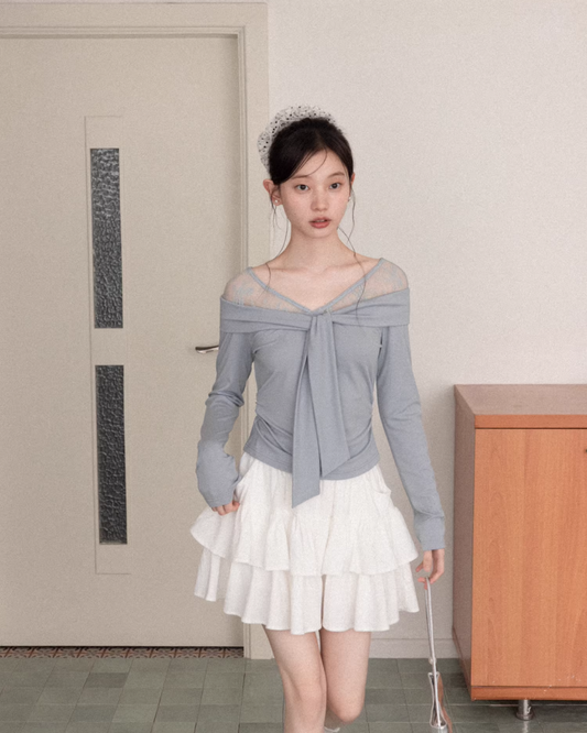 Shoulder Lace Ribbon Long-sleeveT CA0015