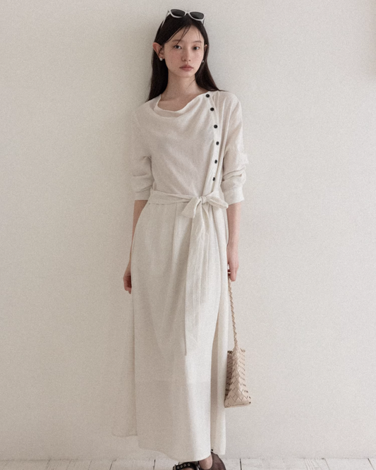 Accent Button Long Dress CA0033