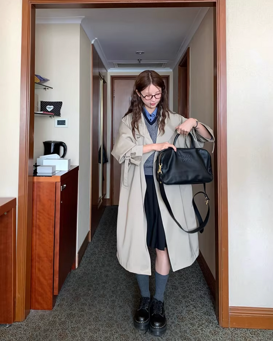 Yellow Bicolor Shirt Gray Long Skirt CA0012