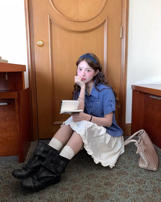 Double Layered Blue Check Skirt BU0158
